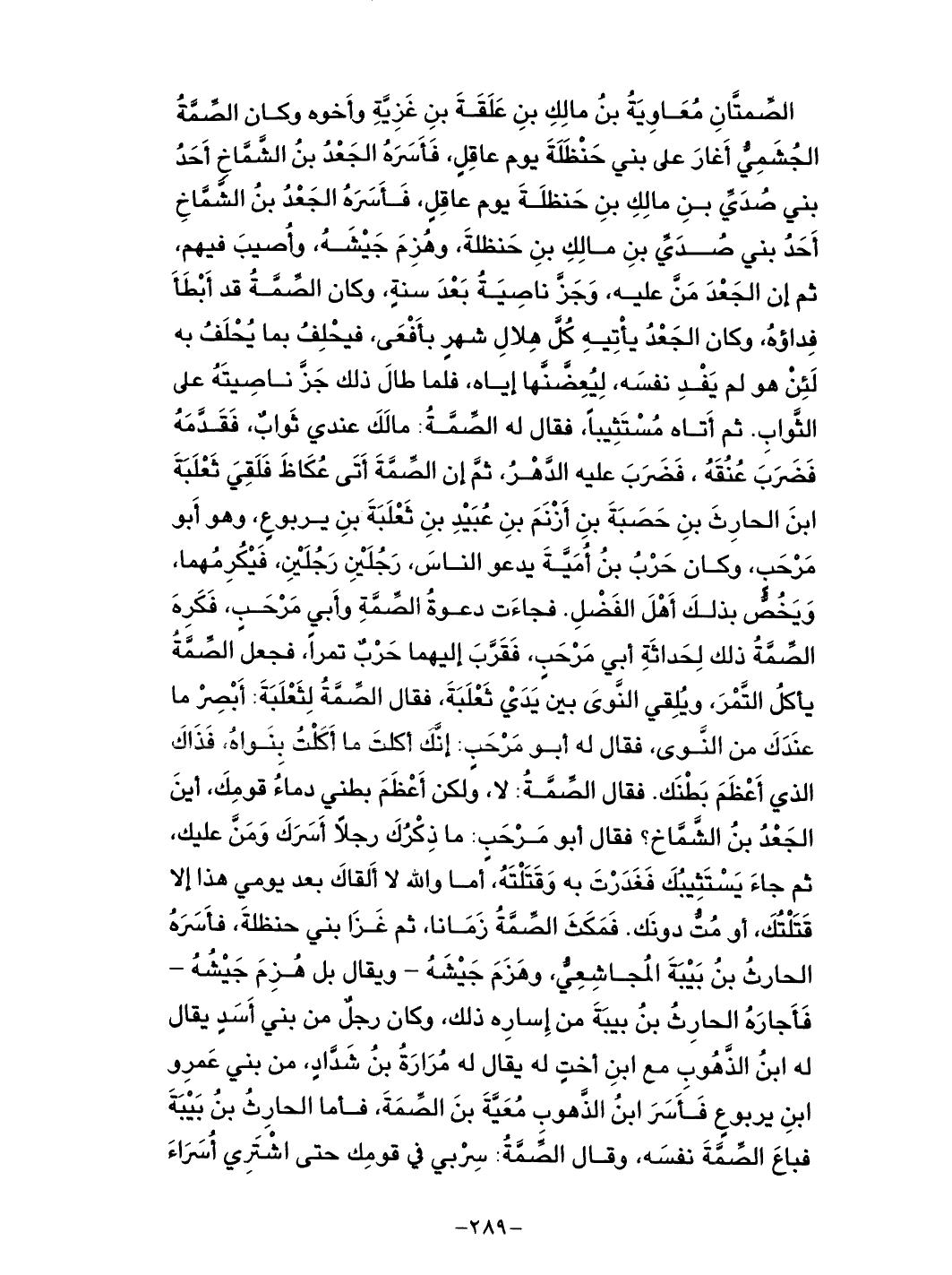 أعظم بطنك. فقال الصمة: لا، ولكن أعظم بطني دماء قومك، أين الجعد بن الشماخ؟ فقال أبو