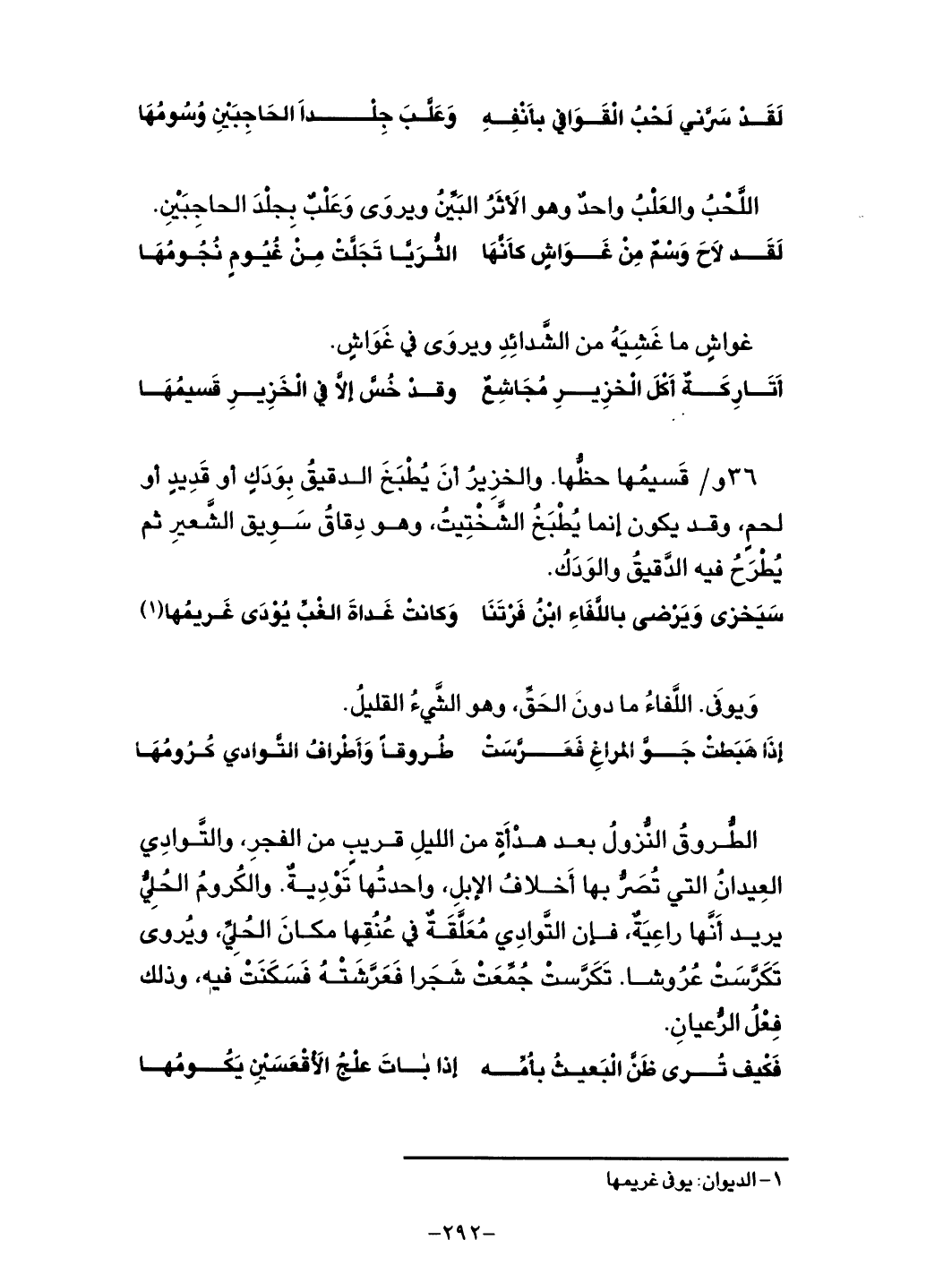 قسيمها حظها. والخزير أن يُطبخ الدقيق بودك أو قديد أو لحم، وقد يكون إنما يُطبخ الشختيت، وهو