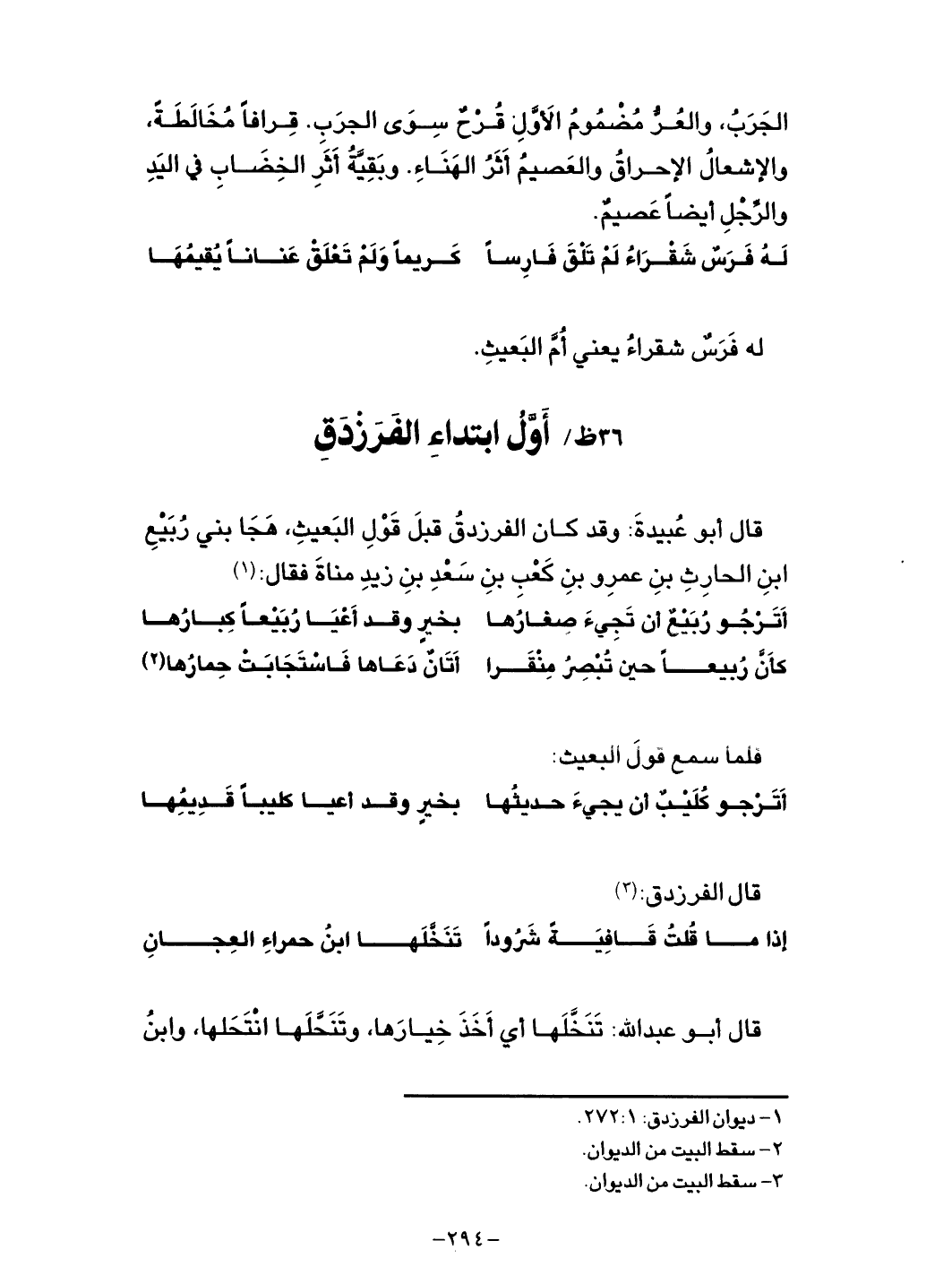 قال أبو عبيدة: وقد كان الفرزدق قبل قول البعيث، هجا بني ربيع ابن الحارث بن عمرو بن كعب