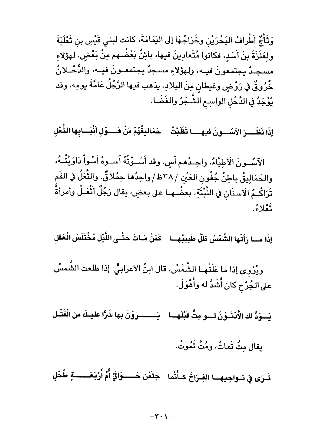 وثأج أطراف البحرين وخراجها إلى اليمامة، كانت لبني قيس بن ثعلبة ولعنزة بن أسد،