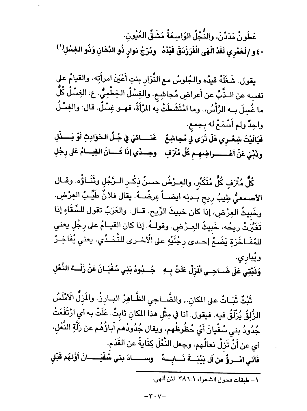 لعَمري لقد ألهَى الفرزدقَ قيدُهُ ... ودُرجُ نوارٍ ذو الدِّهَانِ وذو الغِسلِ