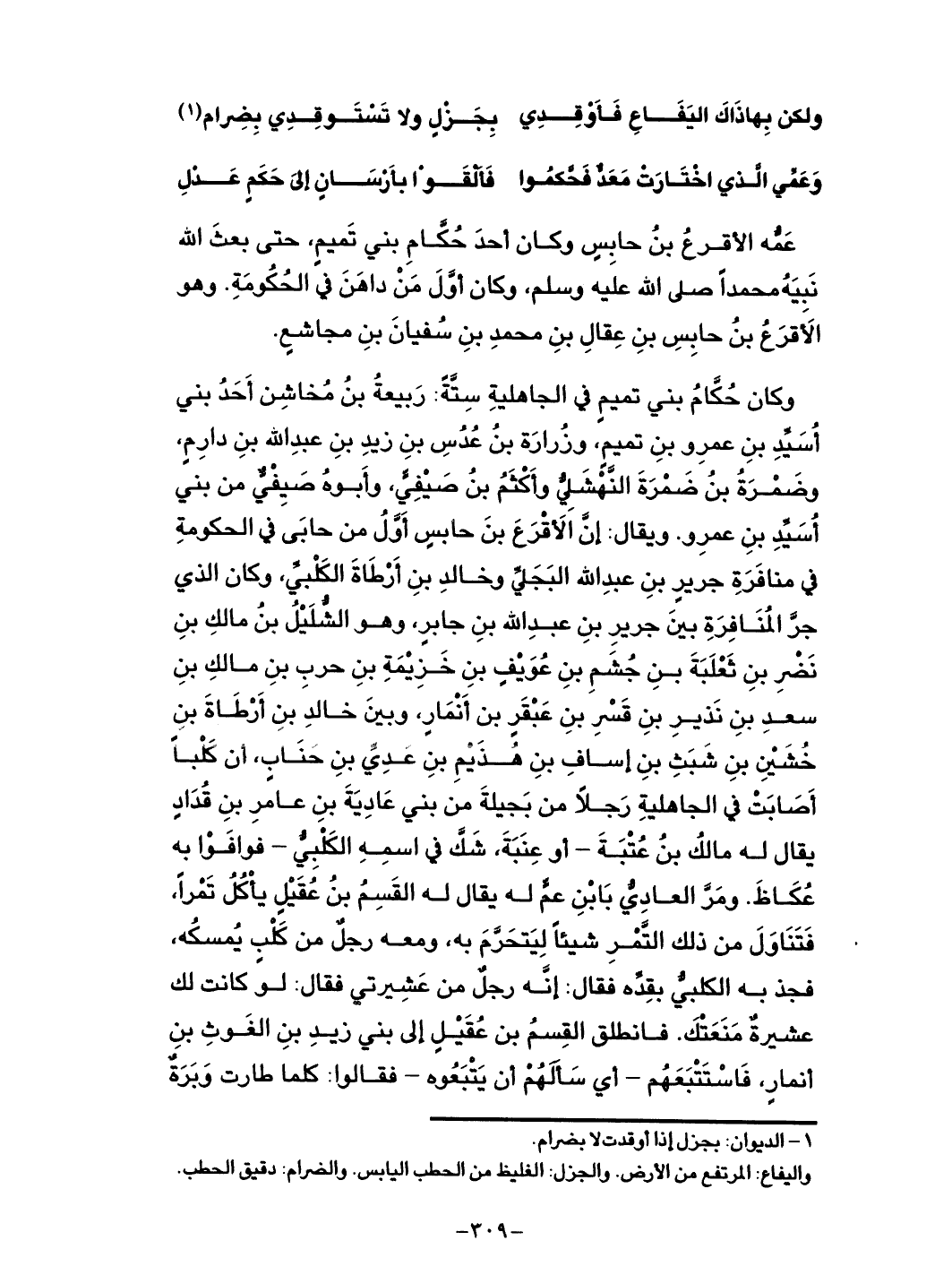 وكان أول من داهن في الحكومة. وهو الأقرع بن حابس بن عقال بن محمد بن سفيان بن مجاشع.