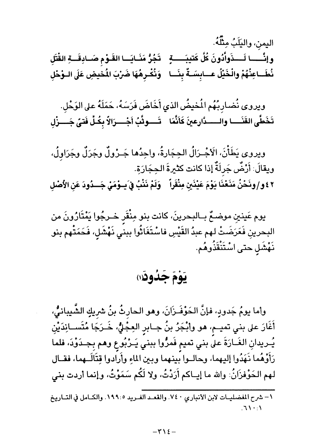 وأما يوم جدود، فإن الحوفزان، وهو الحارث بن شريك الشيباني، أغار على بني تميم، هو وأبجر