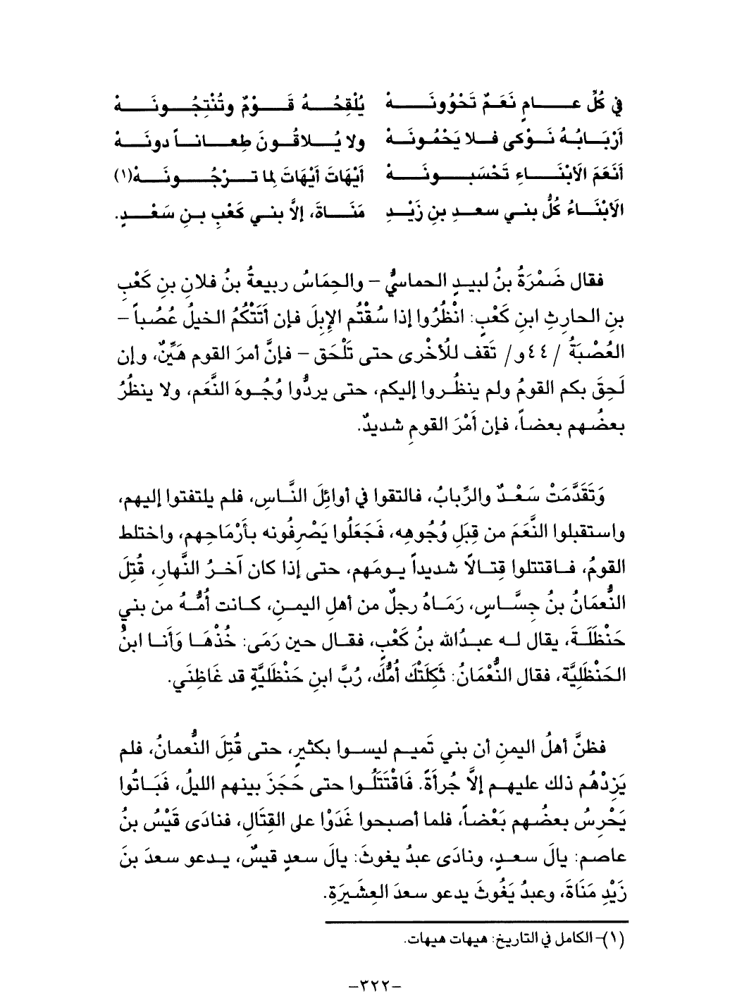 الأبناءُ كلُّ بني سعدِ بنِ زيدِ ... مَناةَ، إلا بني كَعبِ بنِ سعدٍ