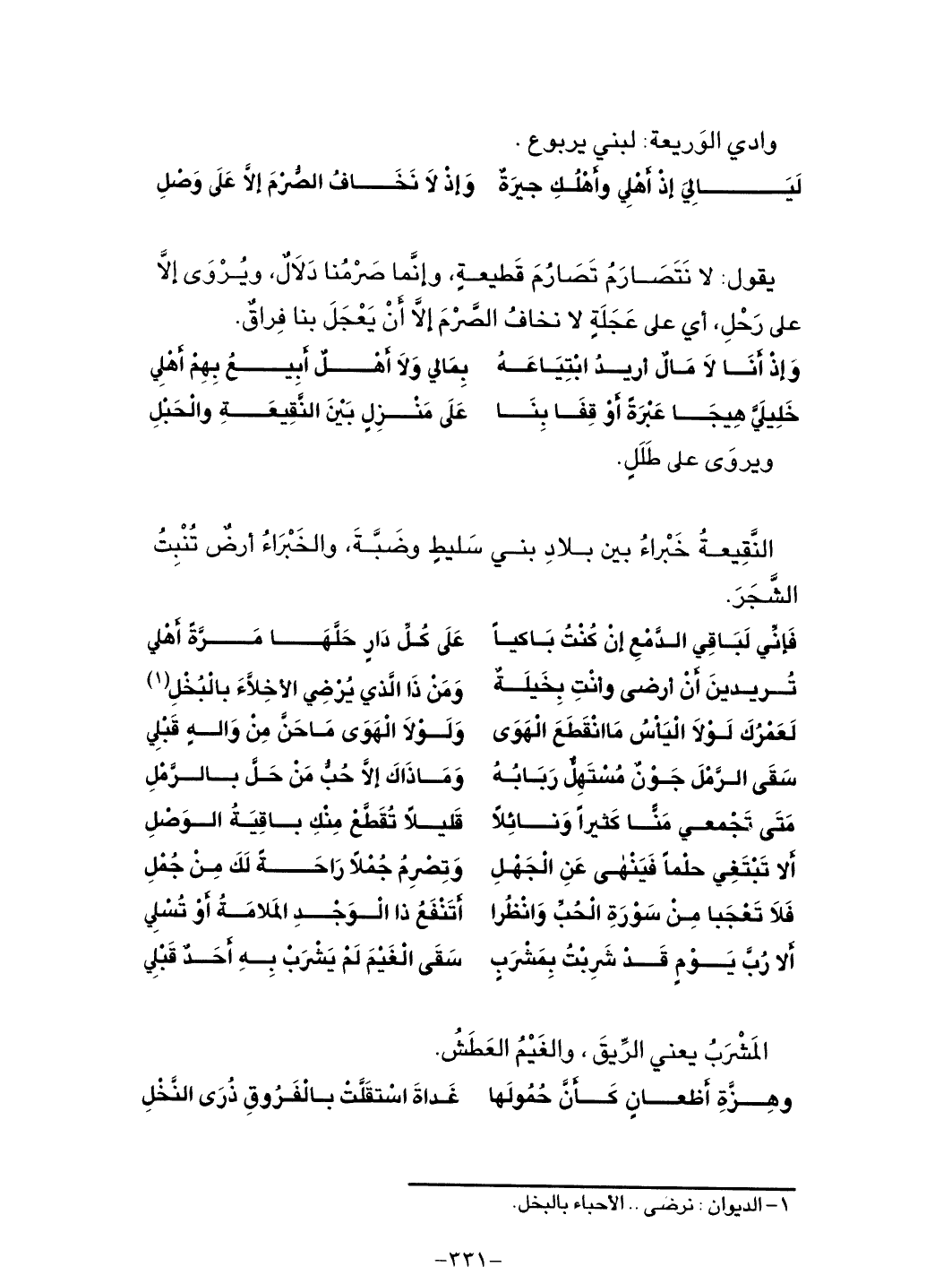 خليليَّ هِيجَا عَبرَةً أو قِفا بِنا ... على مَنزلٍ بينَ النقيعَةِ والحبلِ