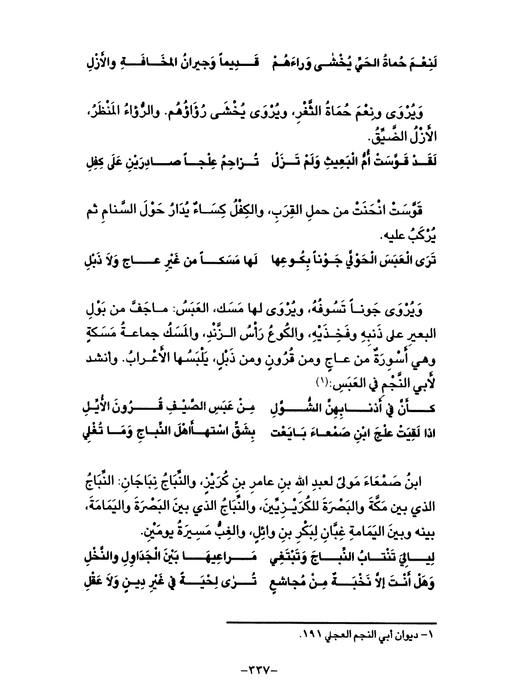 لقد قَوَّسَتْ أمُّ البَعيثِ ولم تَزلْ ... تُزاحِمُ عِلجاً صادِرَينِ على كِفِلِ