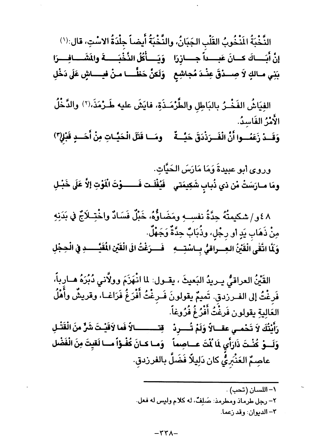 القين العراقي يريد البعيث، يقول: لما انهزم وولاني دبره هارباً، فرغت إلى الفرزدق. تميم يقولون
