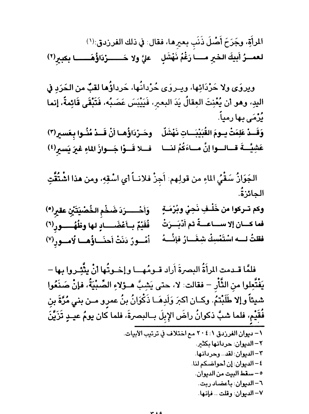 المرأة، وجرح أصل ذنب بعيرها، فقال: في ذلك الفرزدق: