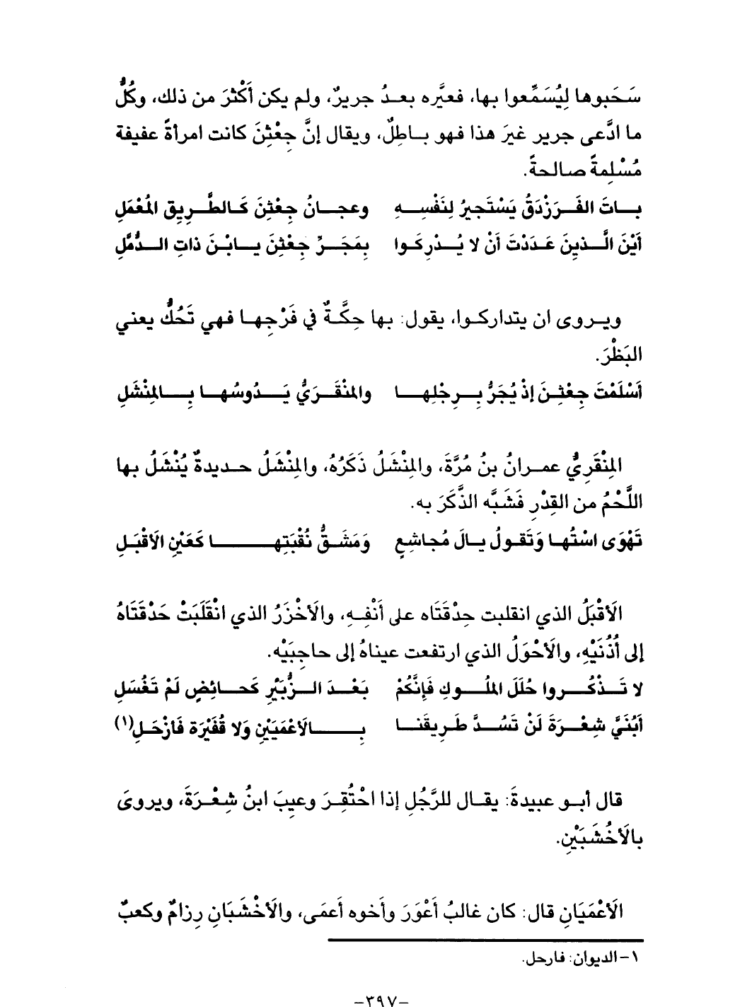 وكل ما ادعى جرير غير هذا فهو باطل، ويقال إن جعثن كانت امرأة عفيفة مسلمة صالحة.