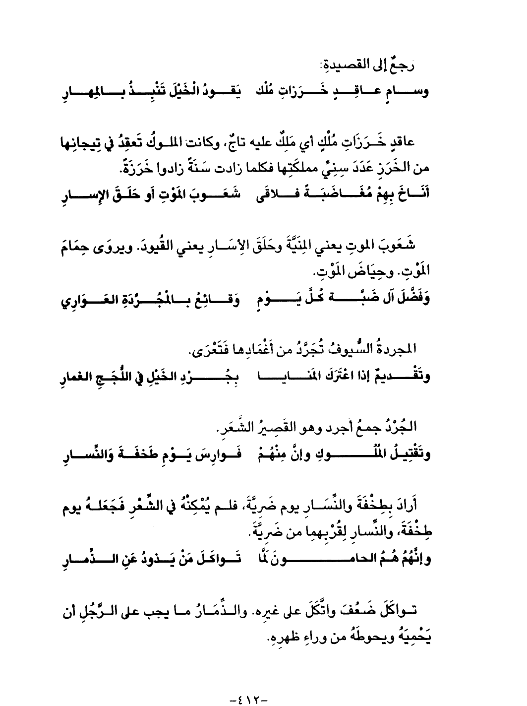 وفضَّلَ آل ضبَّة كُلَّ يومٍ ... وقائِعُ بالمجُرَّدةِ العواري