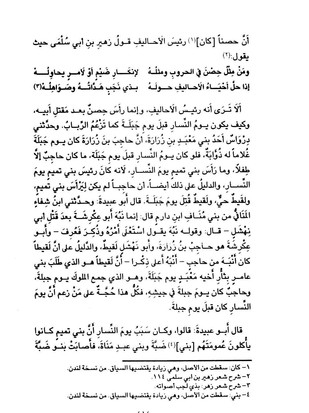 جمع الملوك يوم جبلة، وحاجب كان يوم جبلة في جيشه، فكل هذا حجة على من زعم أن يوم النسار