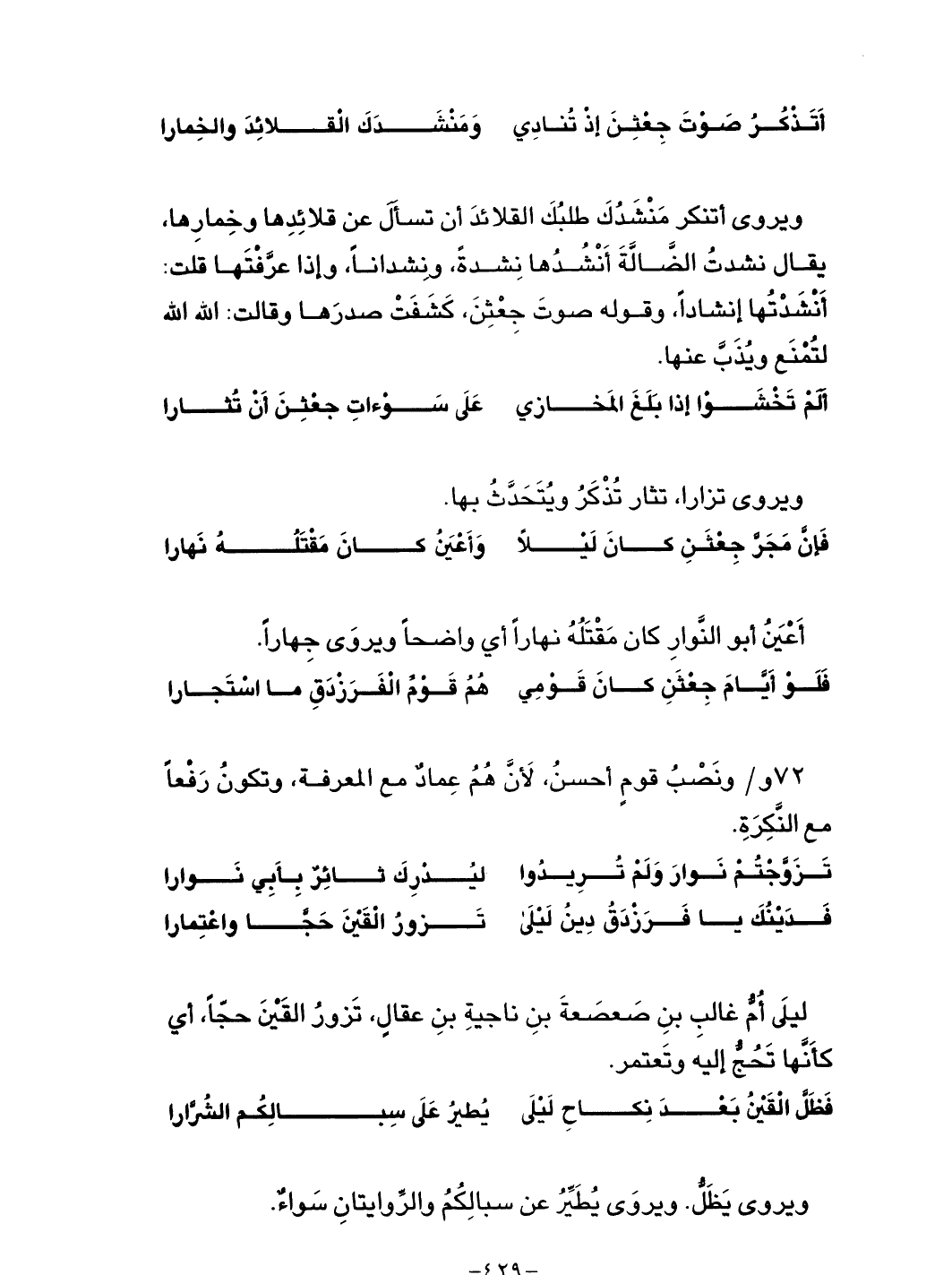 فدينُكَ يا فرزدقُ دِينُ لَيلَى ... تَزورُ القيْنَ حَجَّا واعْتِمارا