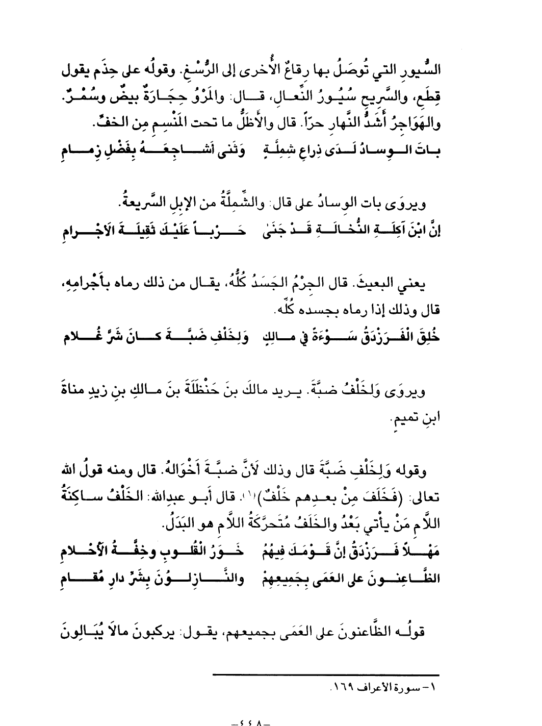 ويروى ولخلف ضبة. يريد مالك بن حنظلة بن مالك بن زيد مناة ابن تميم.