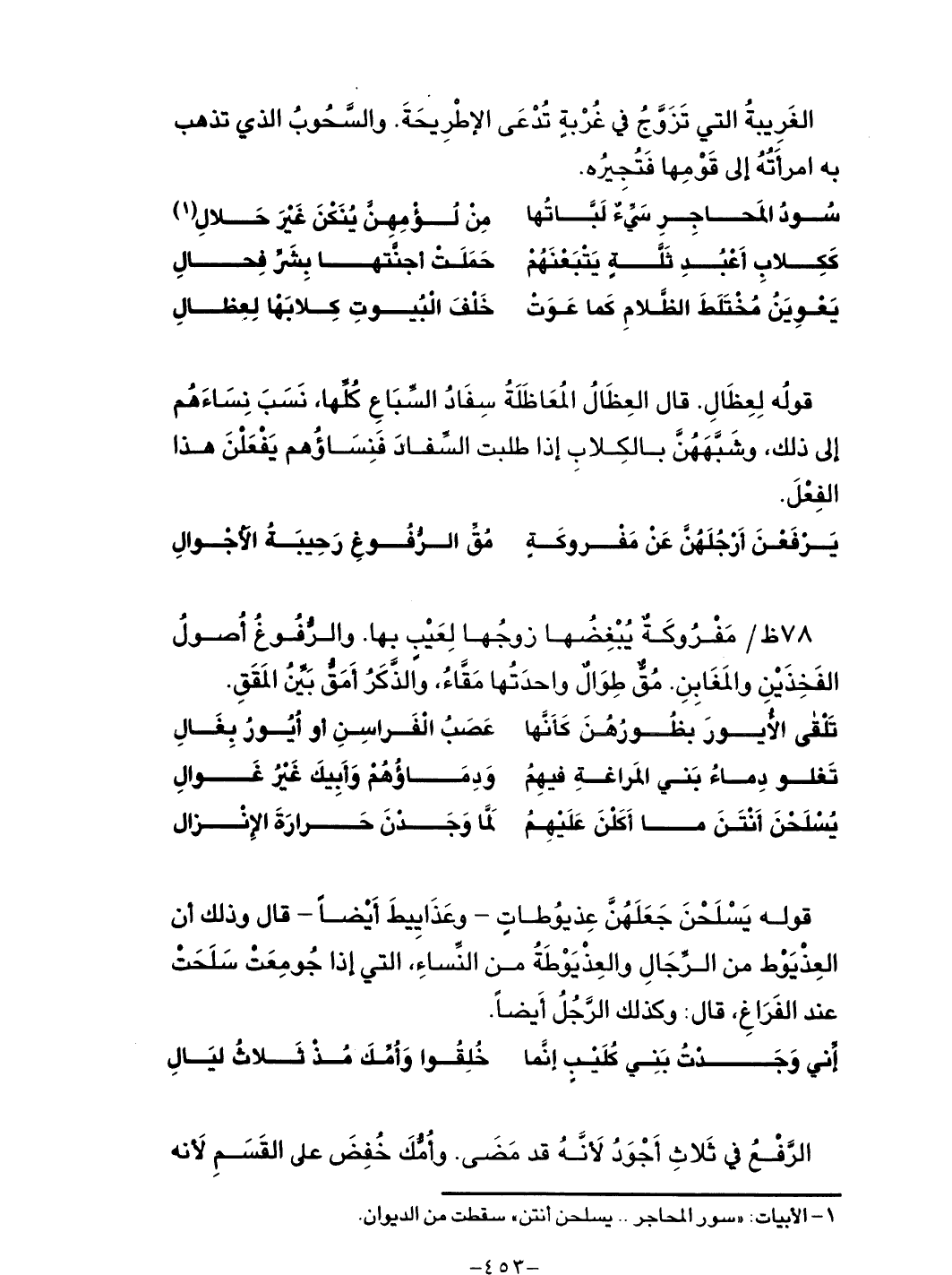 يُسلحنَ أنتنَ ما أكلنَ عليهمُ ... لمَّا وجدنَ حرارةَ الإنزال