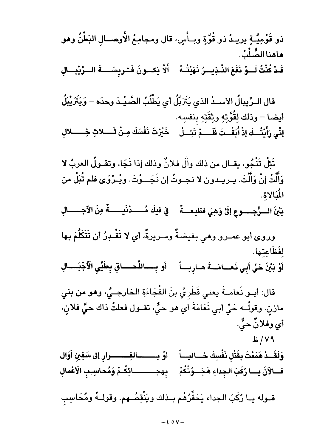 قال: أبو نعامة يعني قطري بن الفجاءة الخارجي، وهو من بني مازن. وقوله حي أبي نعامة أي هو حي،