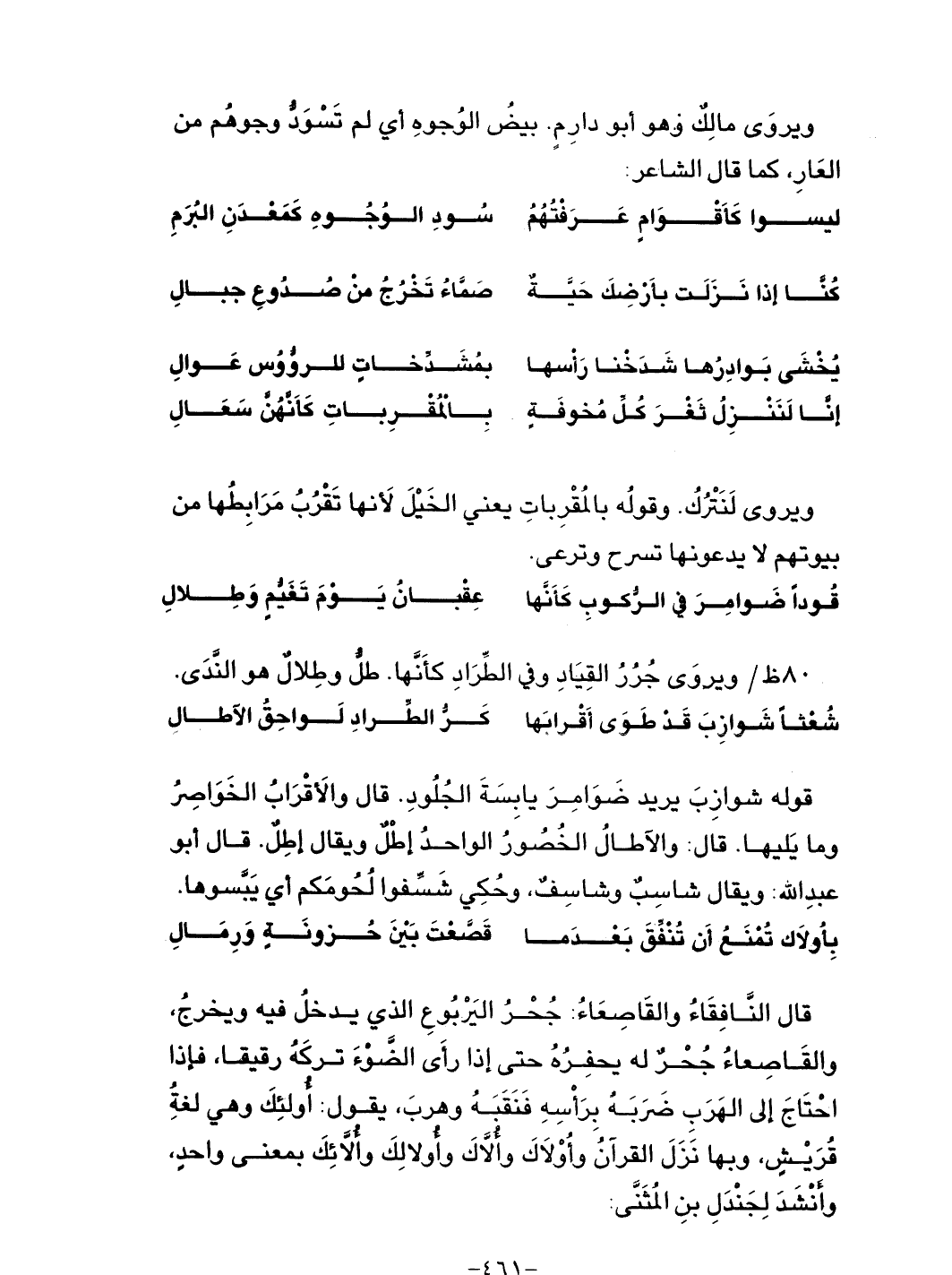 ويروى مالك وهو أبو دارم بيض الوجوه أي لم تسود وجوهم من العار، كما قال الشاعر: