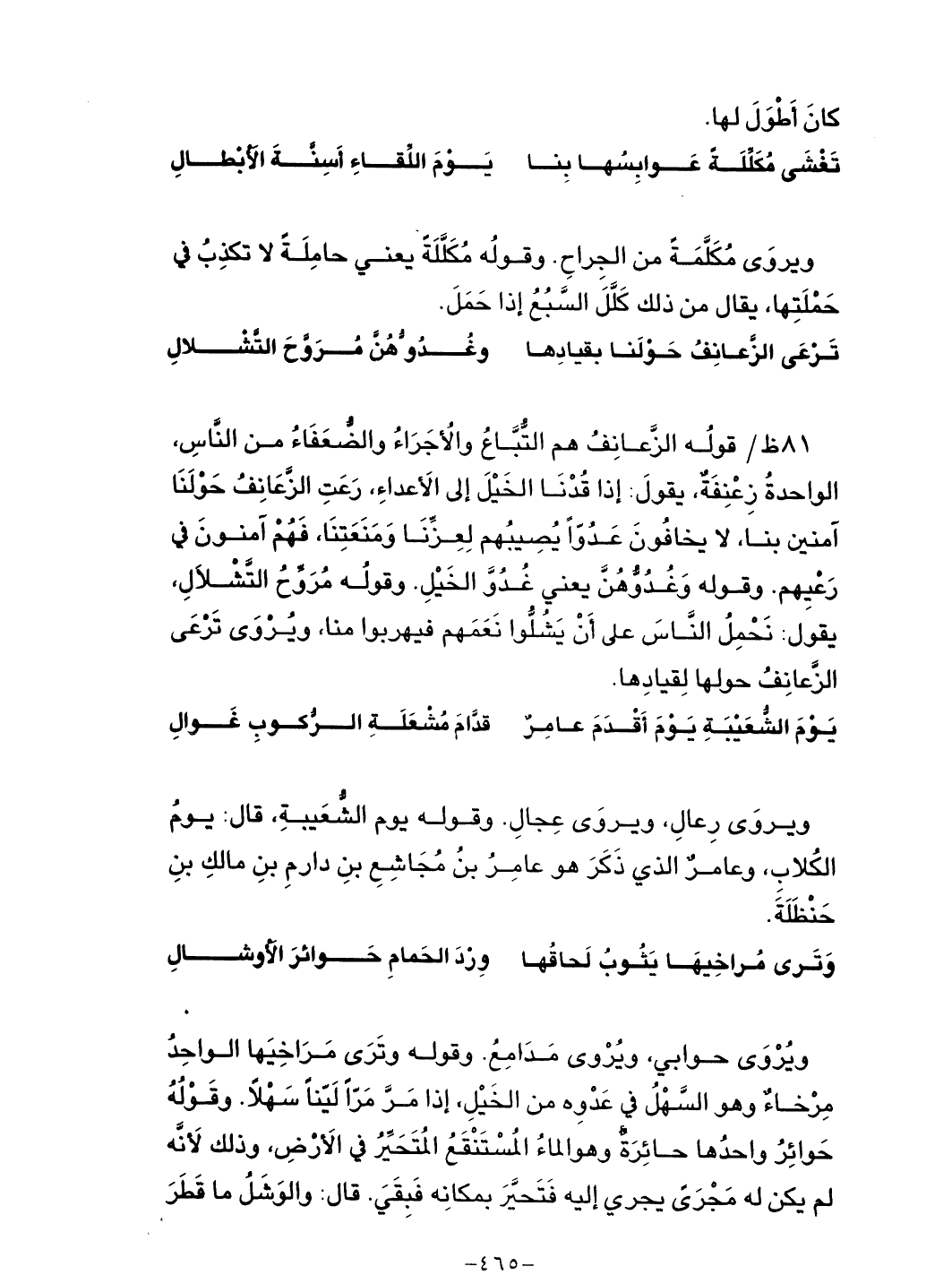 يومَ الشُّعيبةِ يومَ أقدمَ عامِرٌ ... قدَّامَ مُشعَلَةِ الرُّكوبِ غَوالِ