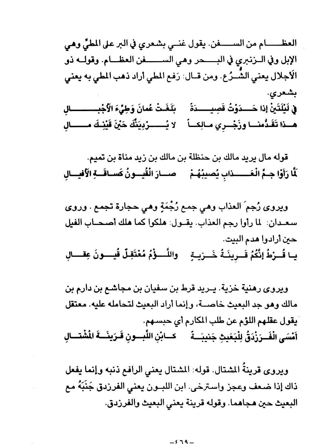 العظام من السفن. يقول غني بشعري في البر على المطي وهي الإبل وفي الزنبري