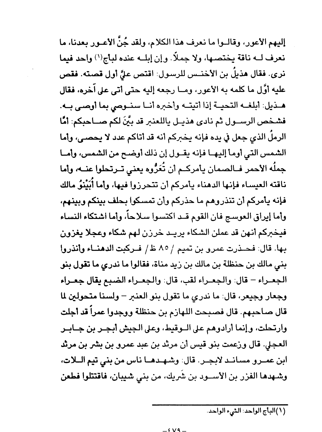 العنبر - ولسنا متحولين لما قال صاحبهم. قال فصبحت اللهازم بن حنظلة ووجدوا عمراً قد أجلت