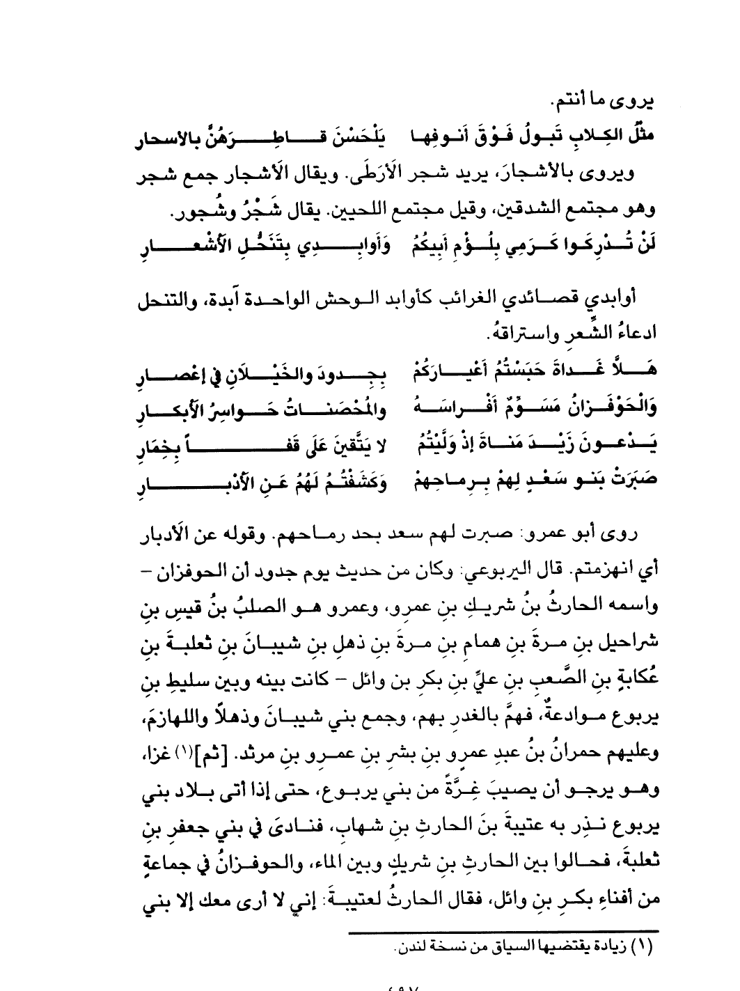 أفناء بكر بن وائل، فقال الحارث لعتيبة: إني لا أرى معك إلا بني