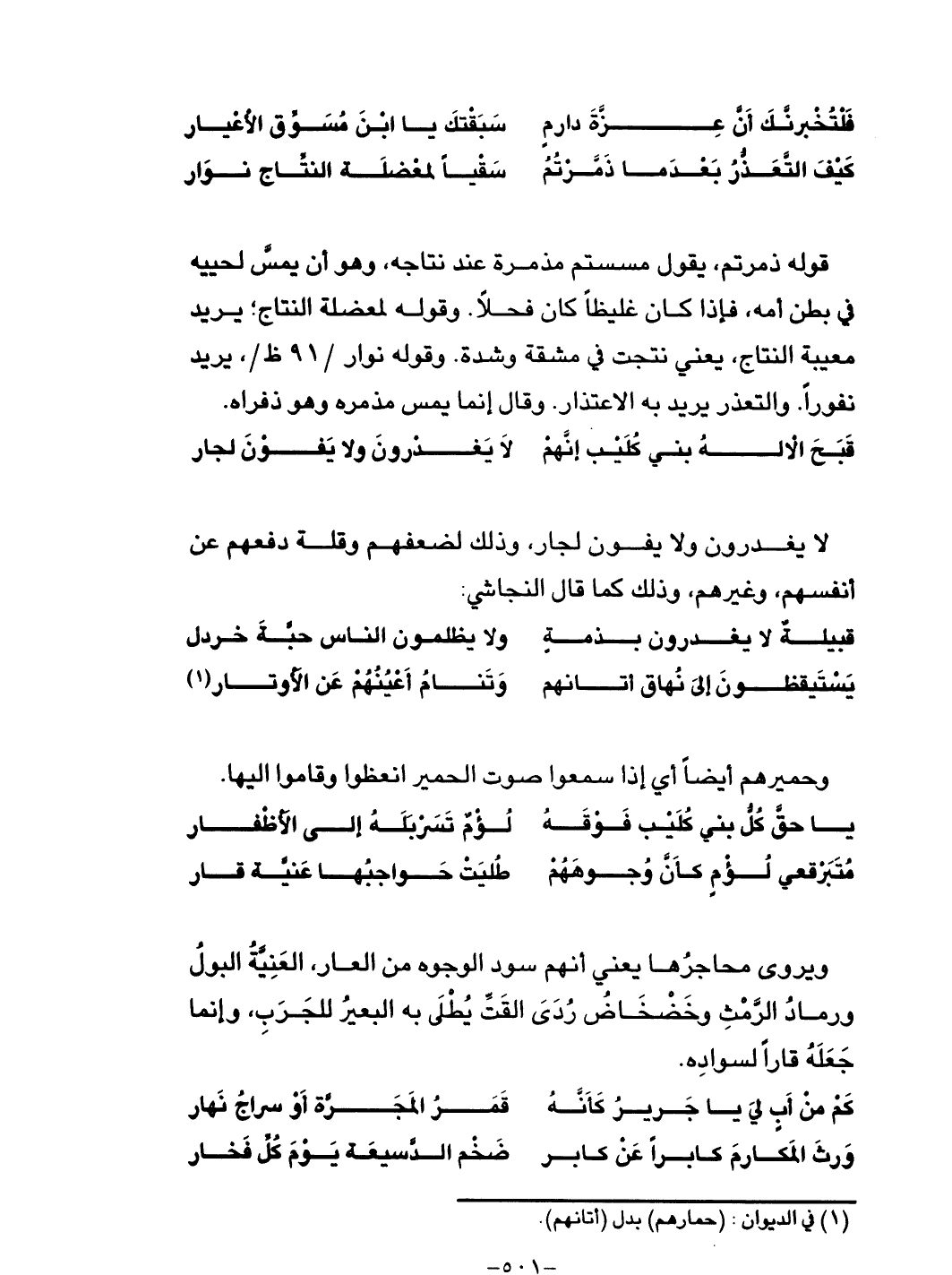 كيفَ التَّعَذُّرُ بعدَما ذمَّرْتُمُ ... سَقْياً لمعضلَة النتَّاج نوَار