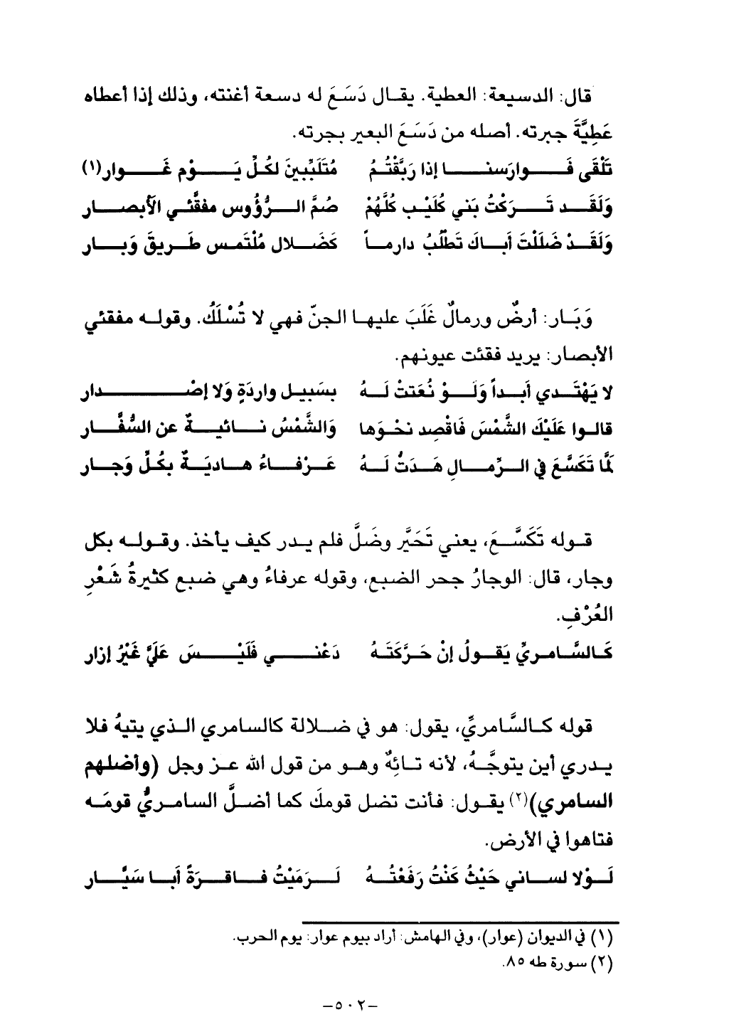 قوله كالسامري، يقول: هو في ضلالة كالسامري الذي يتيه فلا يدري أين يتوجه، لأنه تائه وهو من