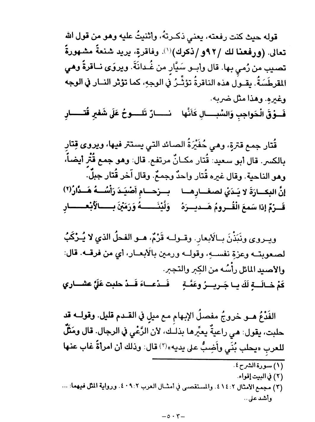 قتار جمع قترة، وهي حقيرة الصائد التي يستتر فيها، ويروى قِتار بالكسر. قال أبو سعيد: قتار مكان
