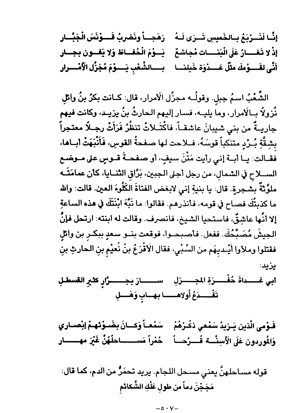 أنَّى لقَوْمكَ مثلُ عدوَة خَيلنا ... بالشِّعْبِ يَومَ مُجزَّل الأُمْرار