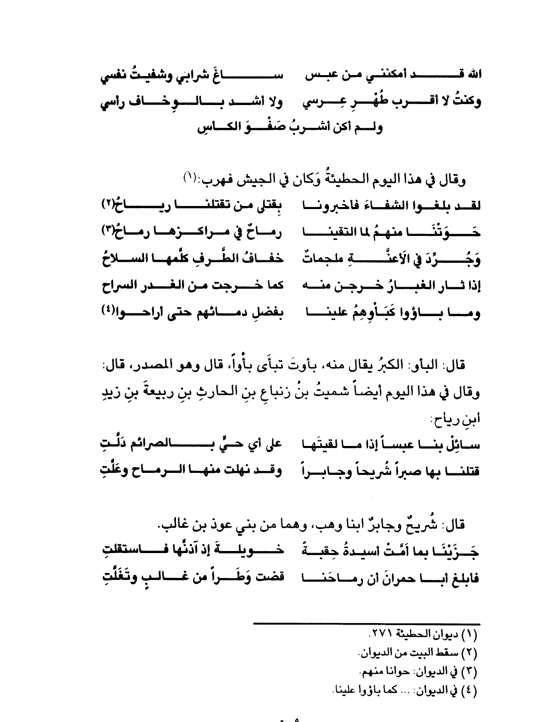 وقال في هذا اليوم الحطيئة وكان في الجيش فهرب: