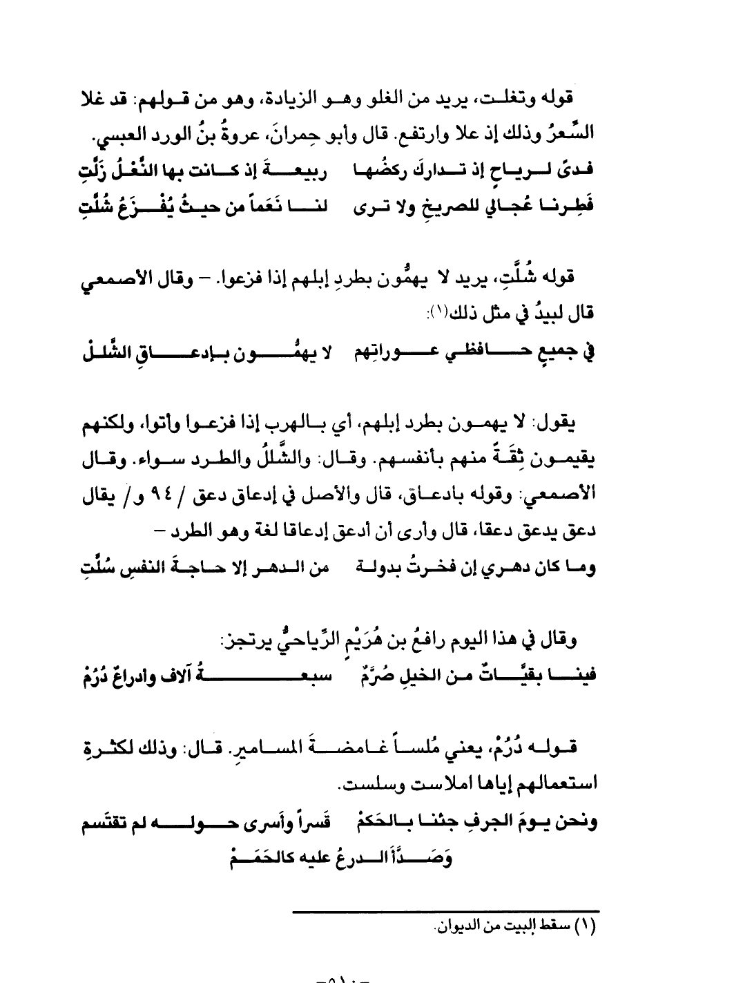 قوله شُلَّتِ، يريد لا يهمون بطرد إبلهم إذا فزعوا - وقال الأصمعي قال لبيد في مثل ذلك: