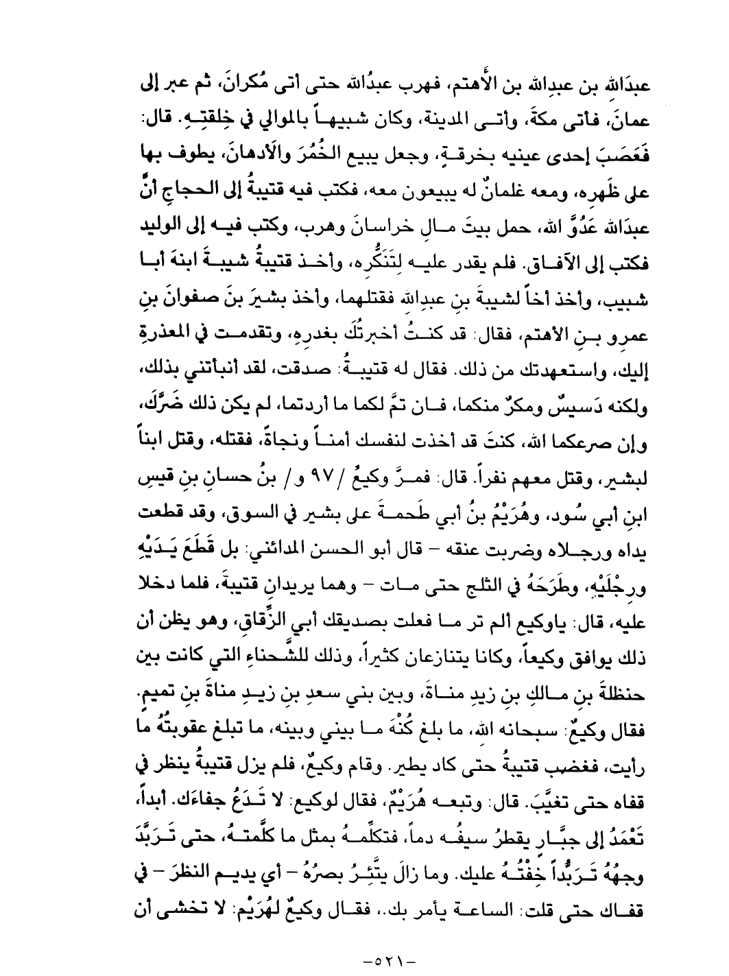 عبد الله بن عبد الله بن الأهتم، فهرب عبد الله حتى أتى مكران،