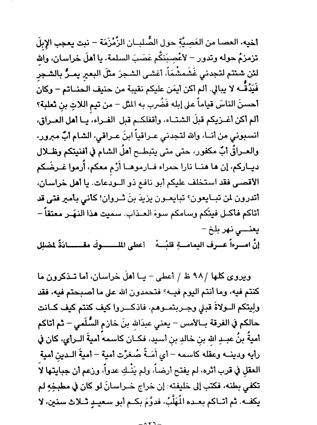 يعجب الإبل تزمزم حوله وتدور - لأعصبنكم عصب السلمة، يا أهل خراسان، والله لئن شئتم