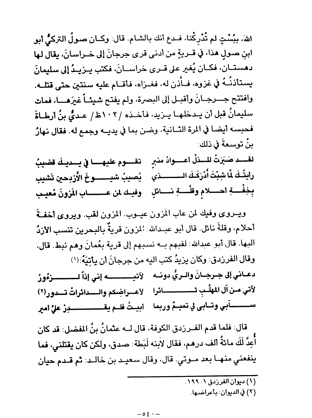 نبط. قال، وقال الفرزدق: وكان يزيد كتب اليه من جرجان أن يأتيه: