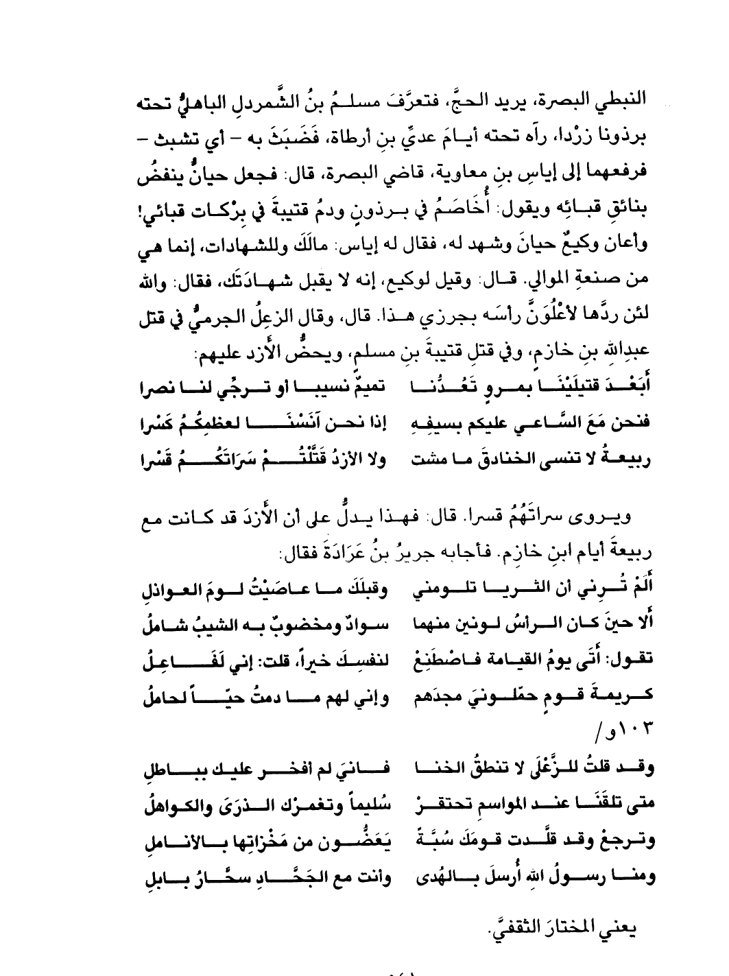 ويروى سراتهم قسرا، قال: فهذا يدل على أن الأزد قد كانت مع ربيعة أيام ابن خازم، فأجابه جرير