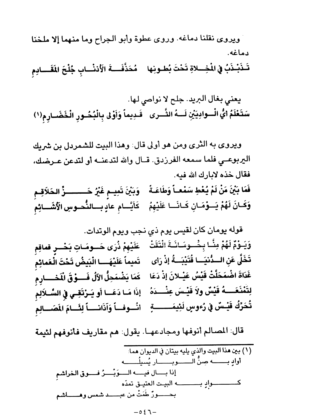 ويومٌ لهُمْ مِنَّا بحِّومانةَ التقتْ ... عليهِمْ ذُرى حوماتِ بَحْرٍ قماقِمِ
