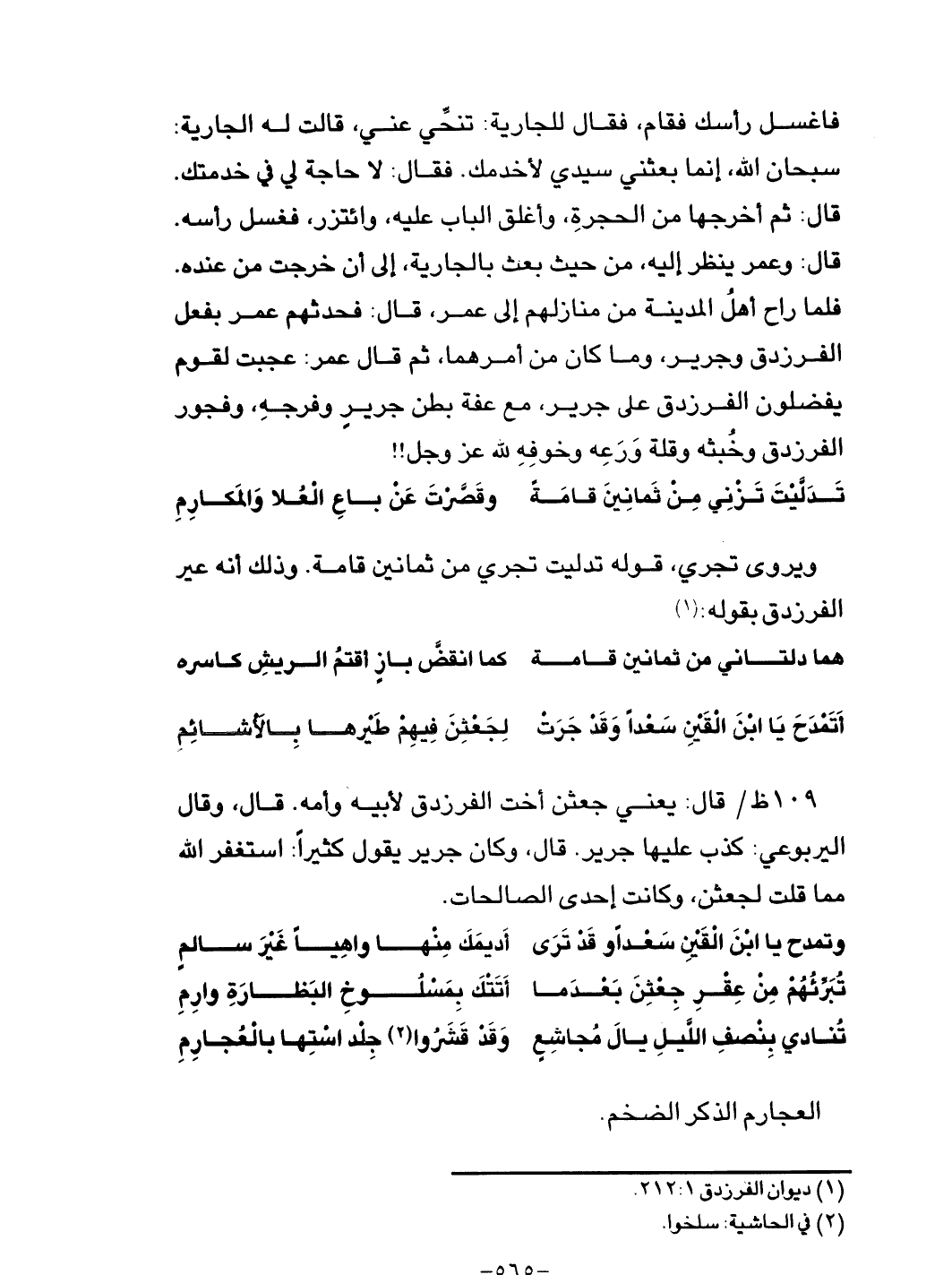 جرير يقول كثيراً: استغفر الله مما قلت لجعثن، وكانت إحدى الصالحات.