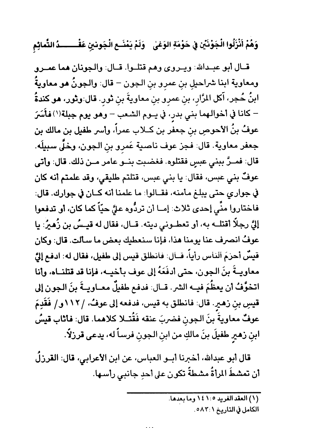 قال أبو عبد الله: ويروى وهم قتلوا. قال: والجونان هما عمرو ومعاوية ابنا شراحيل بن عمرو بن