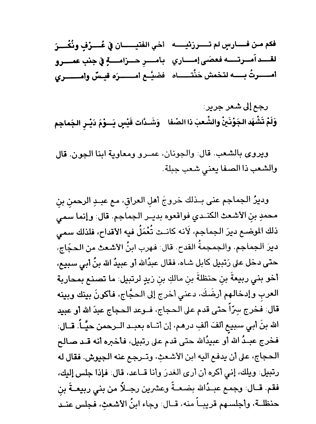 ولمْ تشهَد الجَوْنينْ والشِّعبَ ذا الصْفا ... وشَدَّات قيسٍ يومَ ديرِ الجَماجم