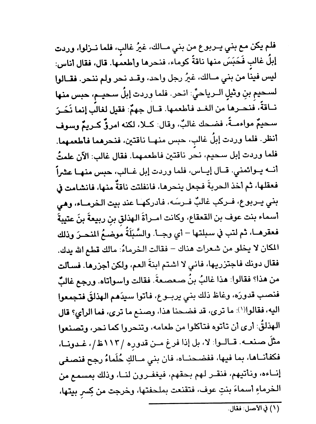 فنحرها من الغد فأطعمها. قال جهم: فقيل لغالب إنما نحر سحيم مواءمة، فضحك غالب، وقال: كلا،