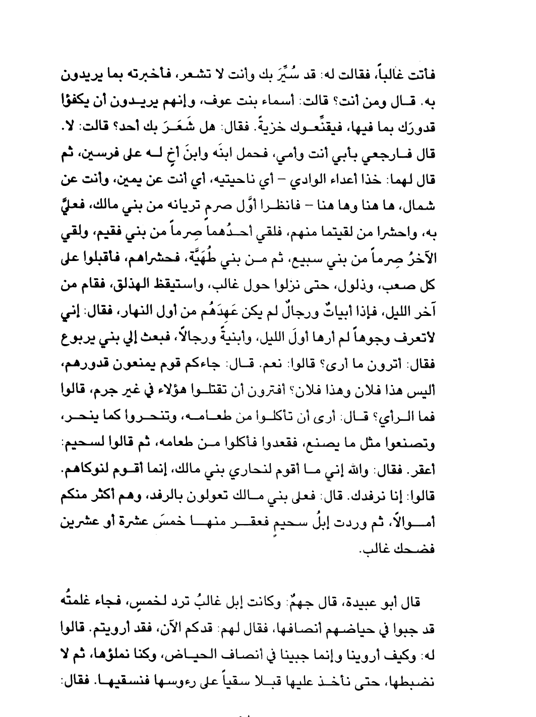قالت: لا. قال فارجعي بأبي أنت وأمي، فحمل ابنه وابن أخ له على فرسين، ثم قال لهما: خذا أعداء