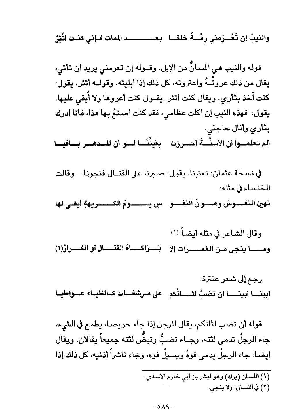 قوله والنيب هي المسان من الإبل. وقوله إن تعرمني يريد أن تأتي، يقال من ذلك عروته واعتروته،