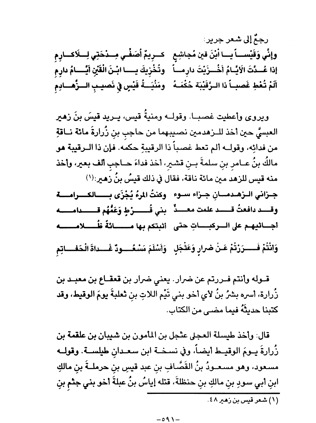 نصيبهما من حاجب بن زرارة مائة ناقة من فدائه، وقوله ألم تعط غصبا ذا الرقيبة حكمه. فإن ذا