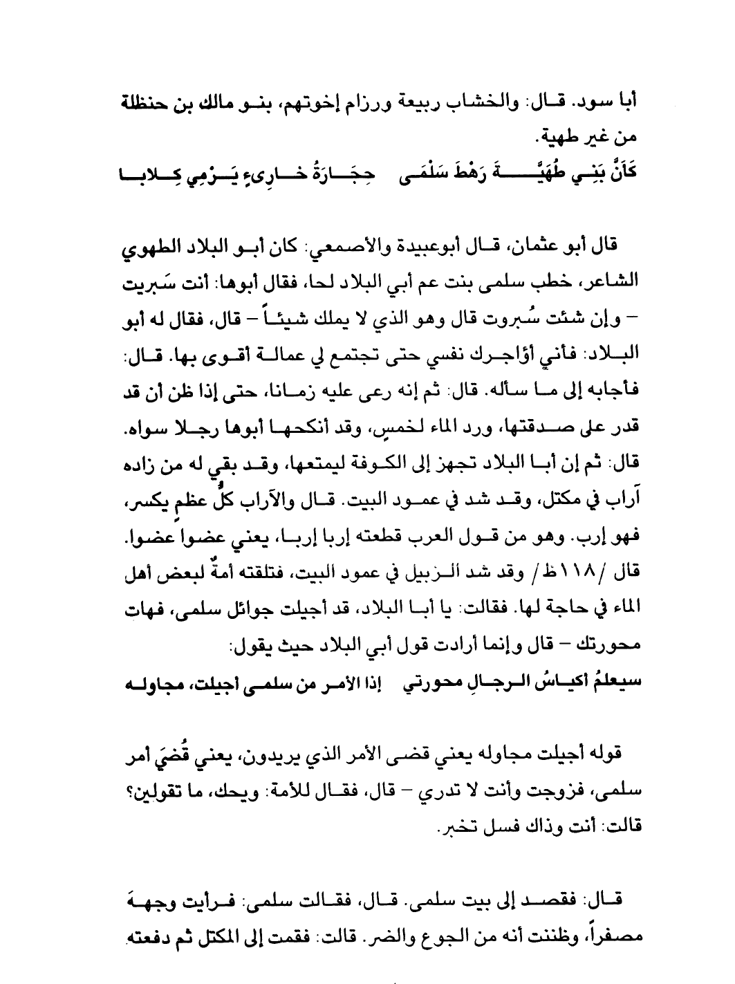 قال أبو عثمان، قال أبو عبيدة والأصمعي: كان أبو البلاد الطهوي الشاعر، خطب سلمى بنت عم