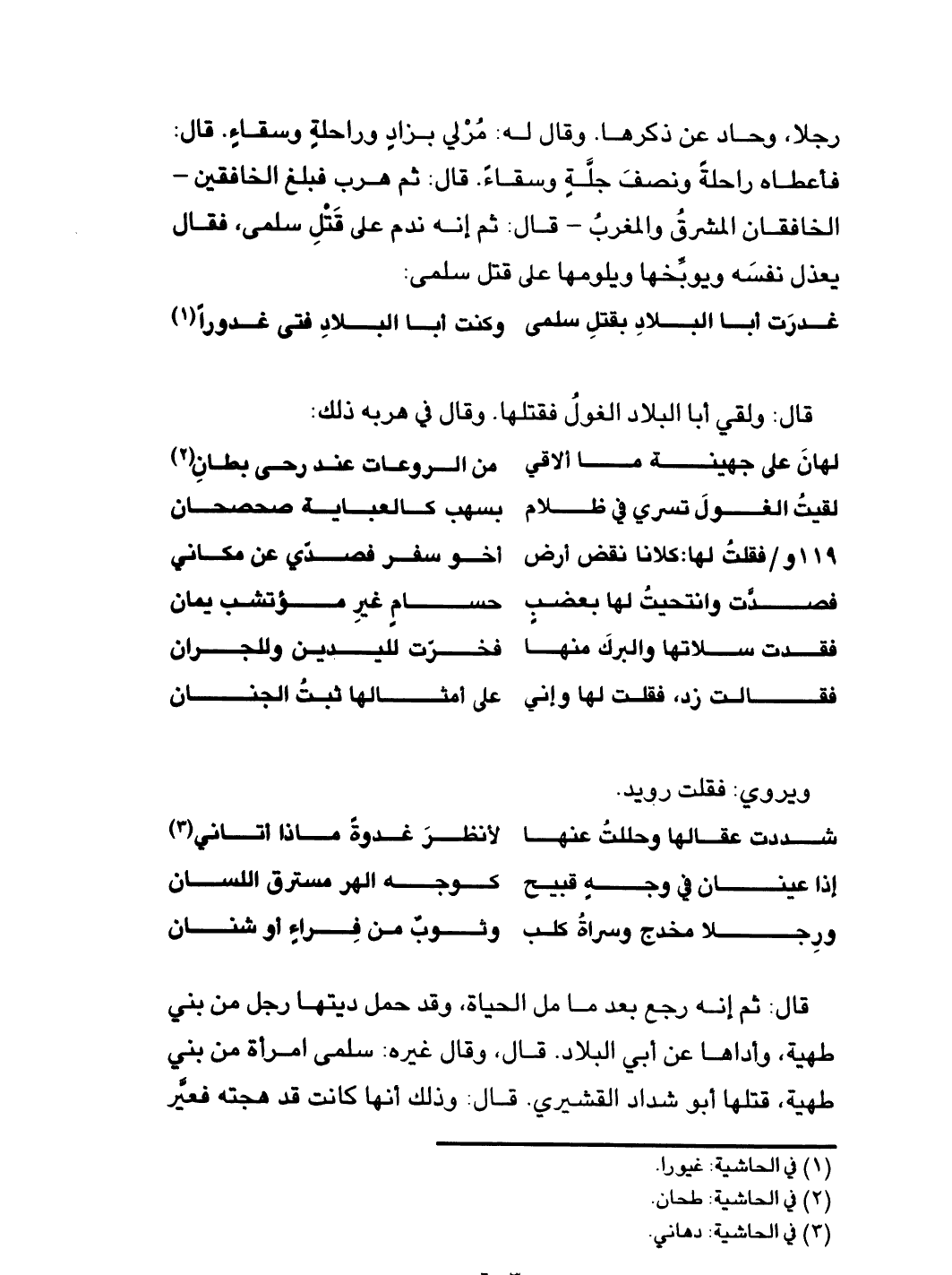 والمغرب - قال: ثم أنه ندم على قتل سلمى، فقال يعذل نفسه ويوبخها ويلومها على قتل سلمى: