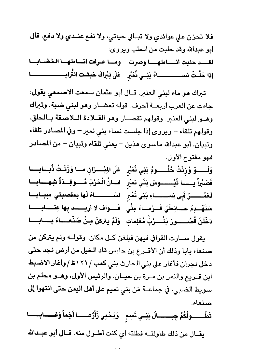 وقولهم تلقاء - ويروى إذا جلست نساء بني نمير - وفي المصادر تلقاء وتبيان. أبو عبد الله ما سوى