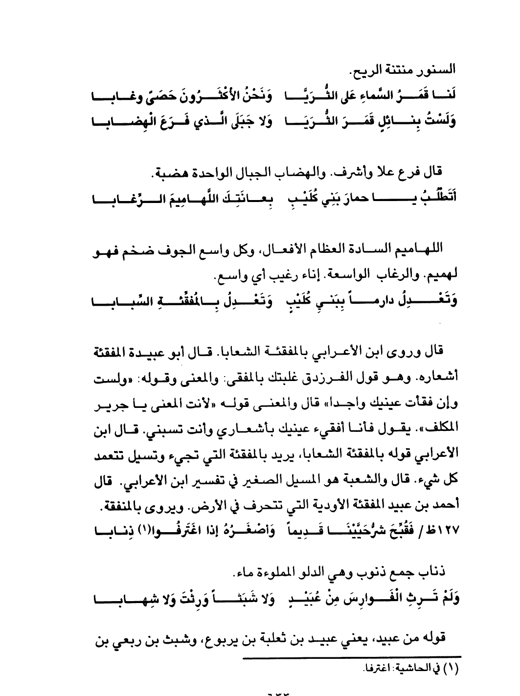 قال وروى ابن الأعرابي بالمفقئة الشعابا. قال أبو عبيدة المفقئة أشعاره. وهو قول الفرزدق غلبتك