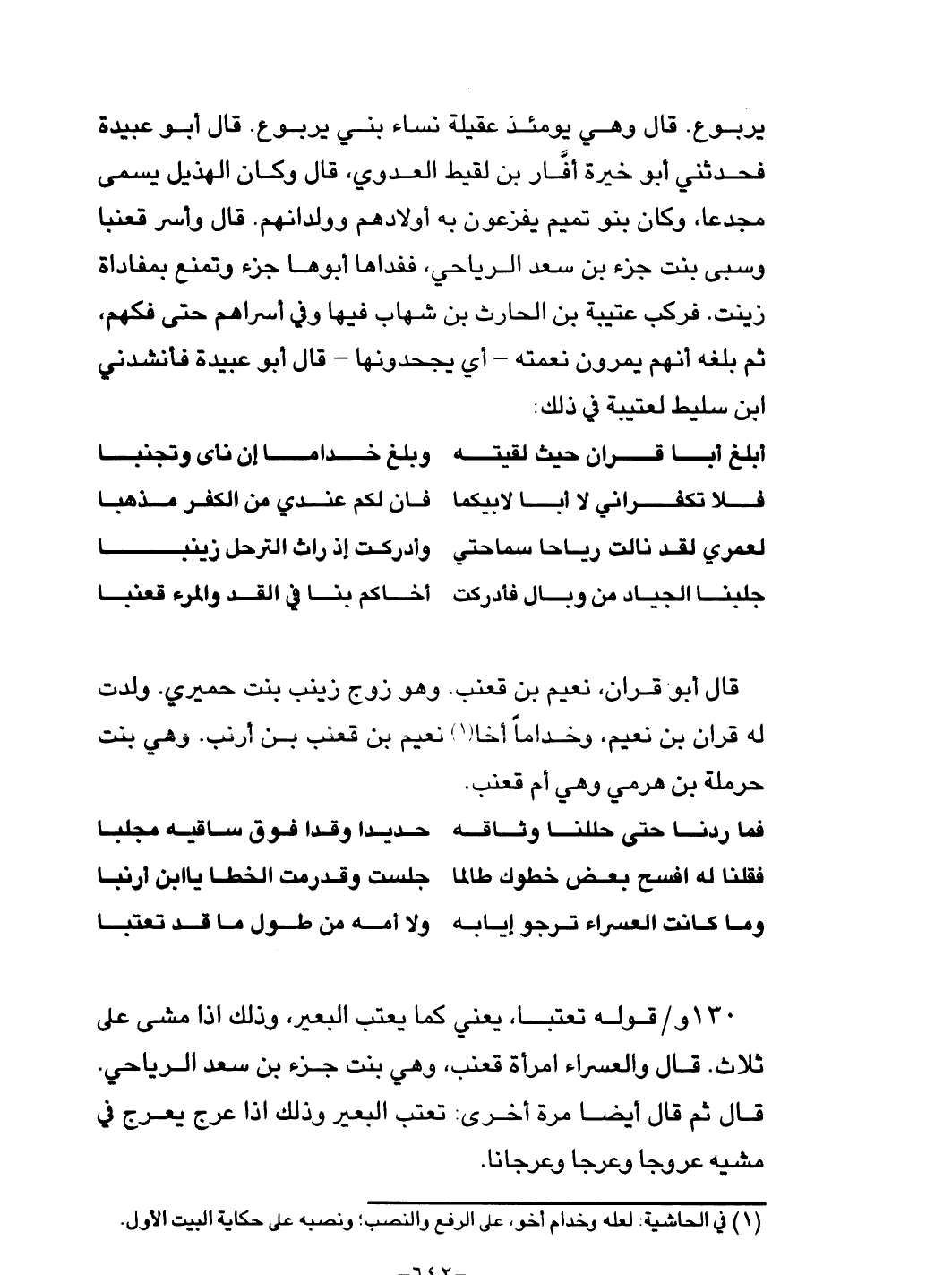 جزء بن سعد الرياحي. قال ثم قال أيضا مرة أخرى: تعتب البعير وذلك إذا عرج يعرج في مشيه