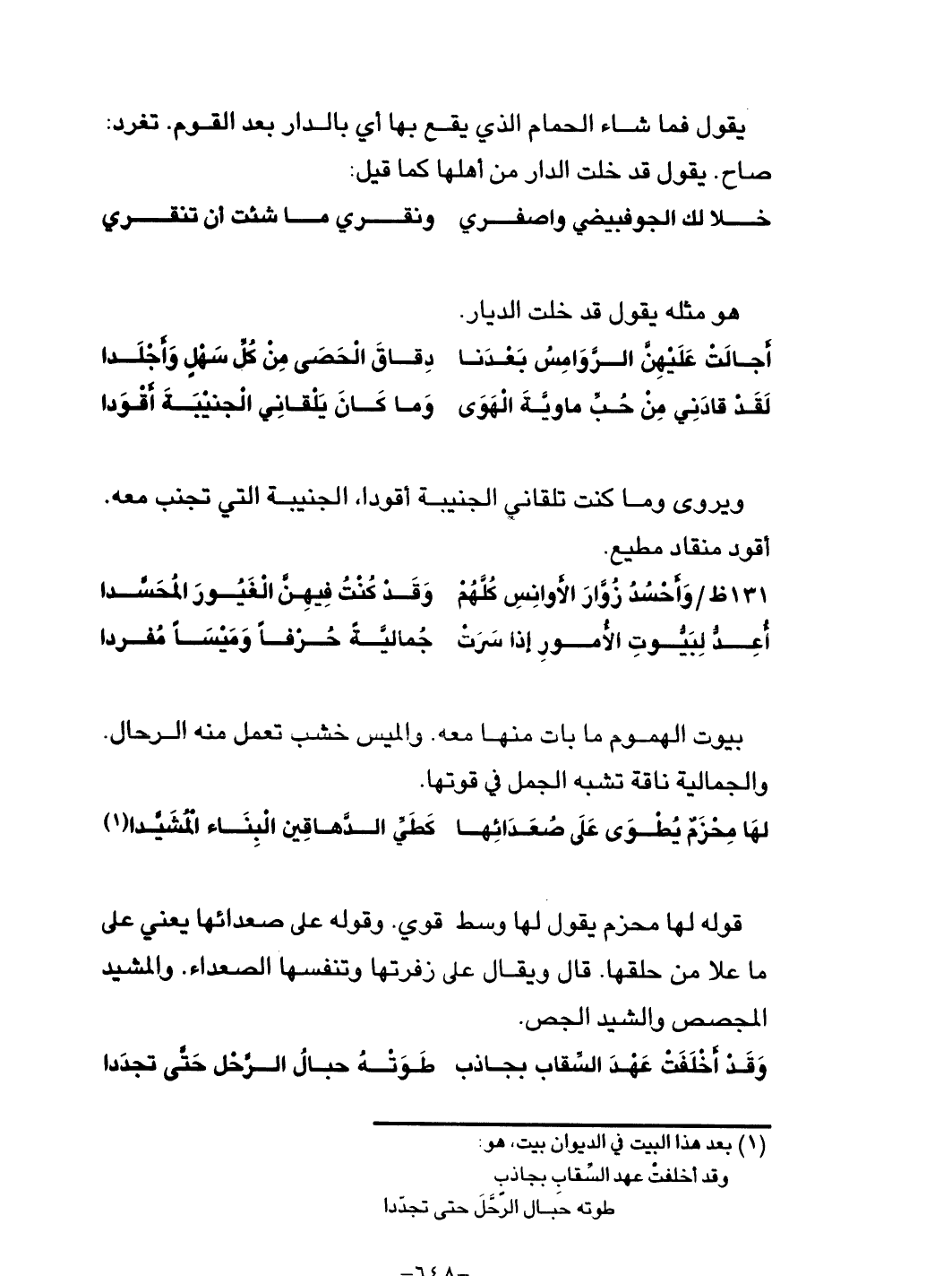 أُعِدُّ لبيُّوتِ الأمورِ إذا سرتْ ... جُماليَّةٌ حُرْفاً وميساً مُفردا