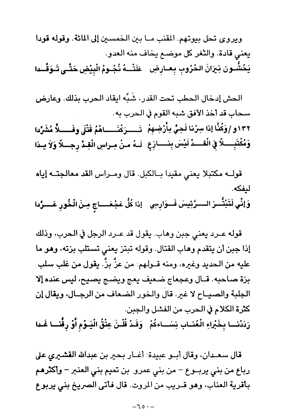 قال سعدان، وقال أبو عبيدة: أغار بحير بن عبد الله القشيري على رباع من بني يربوع - من بني