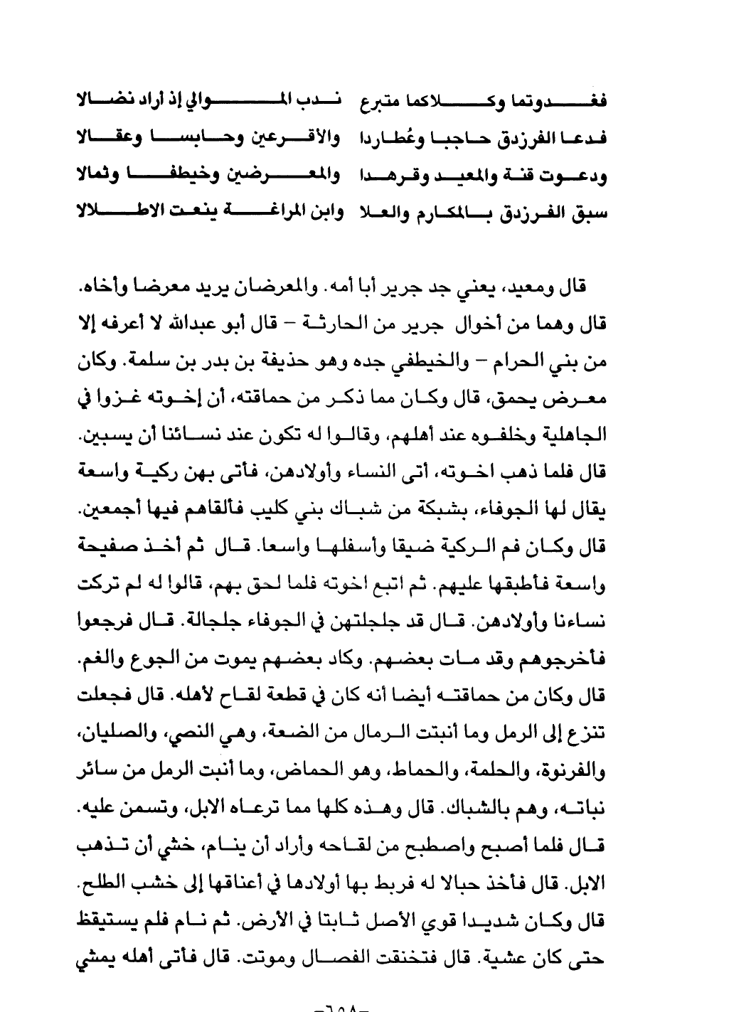 فدعا الفرزدق حاجبا وعُطاردا ... والأقرعين وحابسا وعقالا